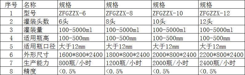 灌装计量、灌装调整方便简单,用于灌装100-5000ml瓶(包括异形瓶)。